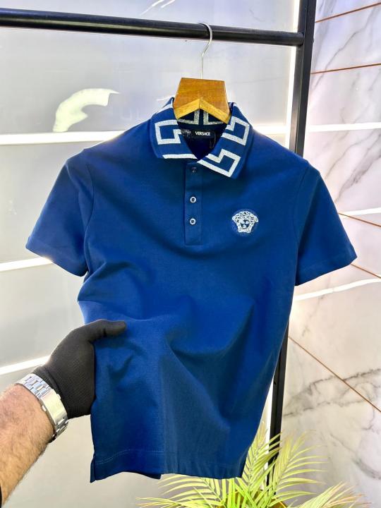 Home T-Shirts Versace Blue Imported Collar Neck Premium Polo T-shirt F3047-BU